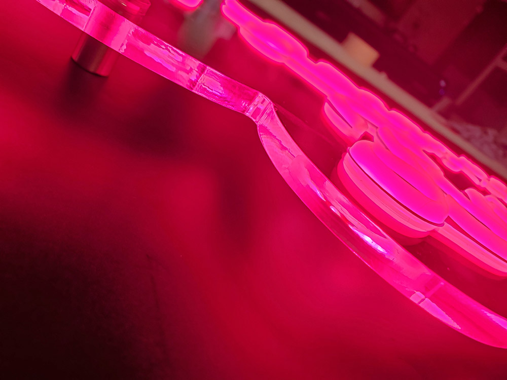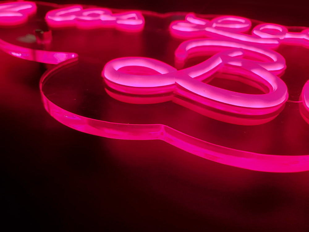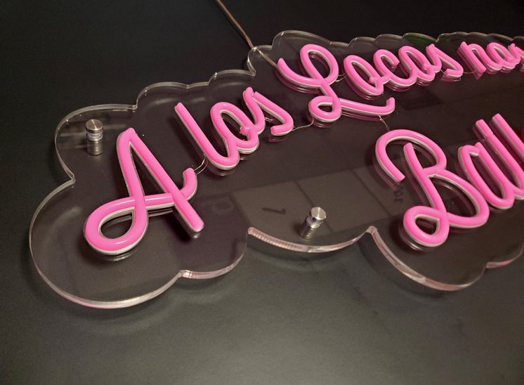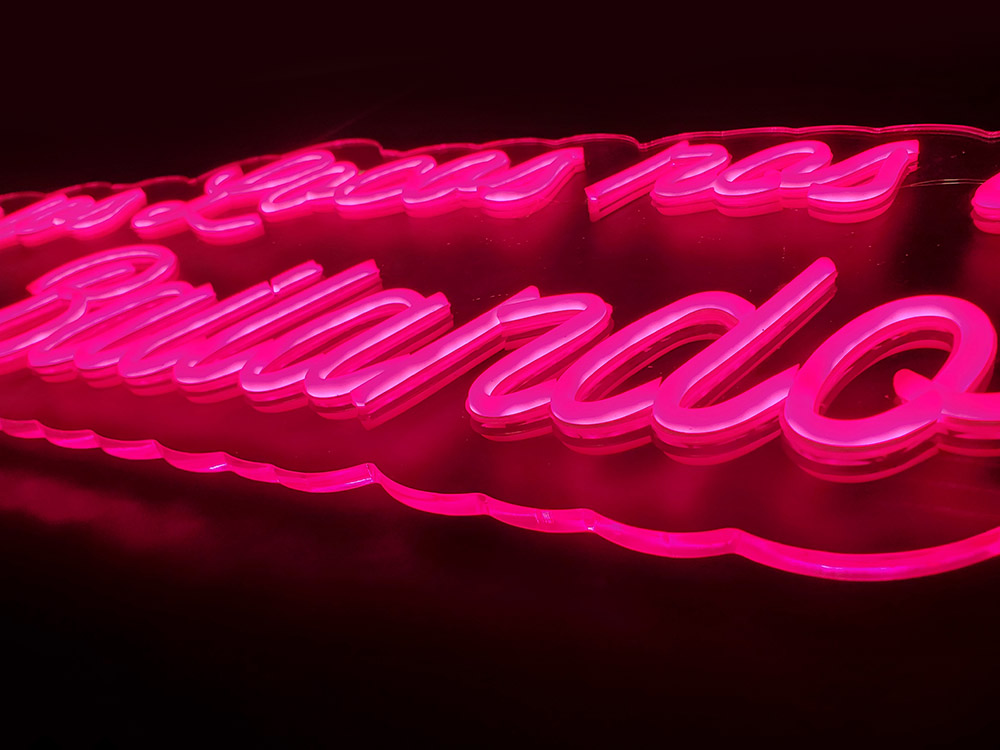 Este formato de rótulo, está compuesto por una base que a su vez hace de estructura para alojar la tira de led flexible, esta estructura se puede fijar a pared o sustentar del techo, la iluminación es muy intensa, además tiene la ventaja de que se pueden combinar colores en textos logotipos y su superficie puede ser METACRILATO, PVC, MADERA, METAL, etc.